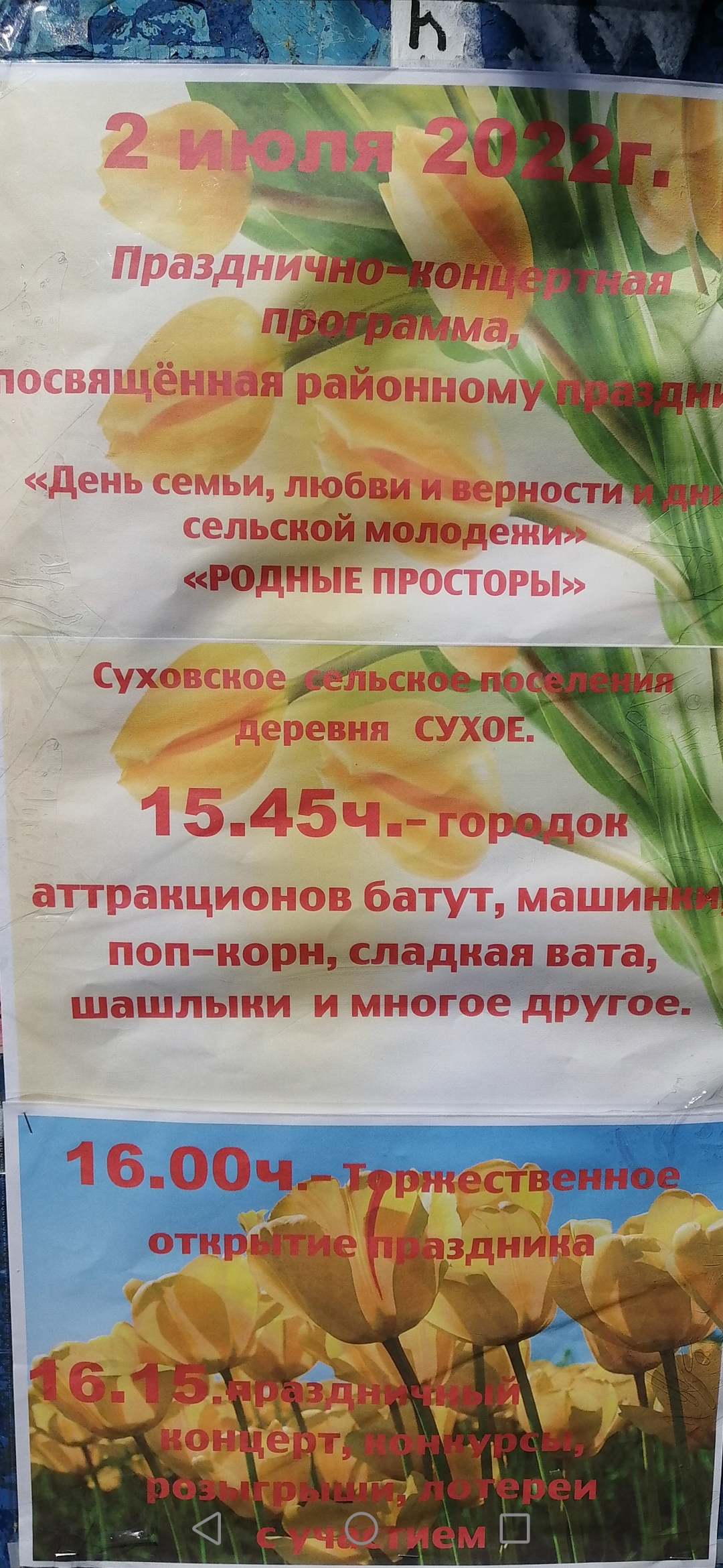 2 июля состоится празднично-концертная программа посвященная «Дню семьи, любви и верности и дню сельской молодежи» Опубликовано 29.06.2022 в рубрике Афиша