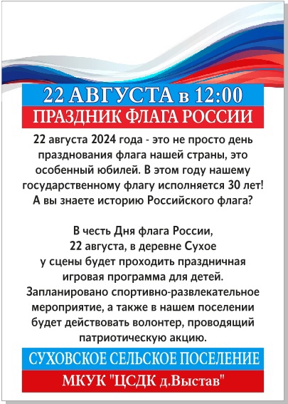22 августа в 12:00 Праздник флага России